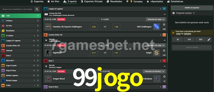 O 99jogo oferece uma grande seleção de opções de apostas em e-sports com probabilidades competitivas